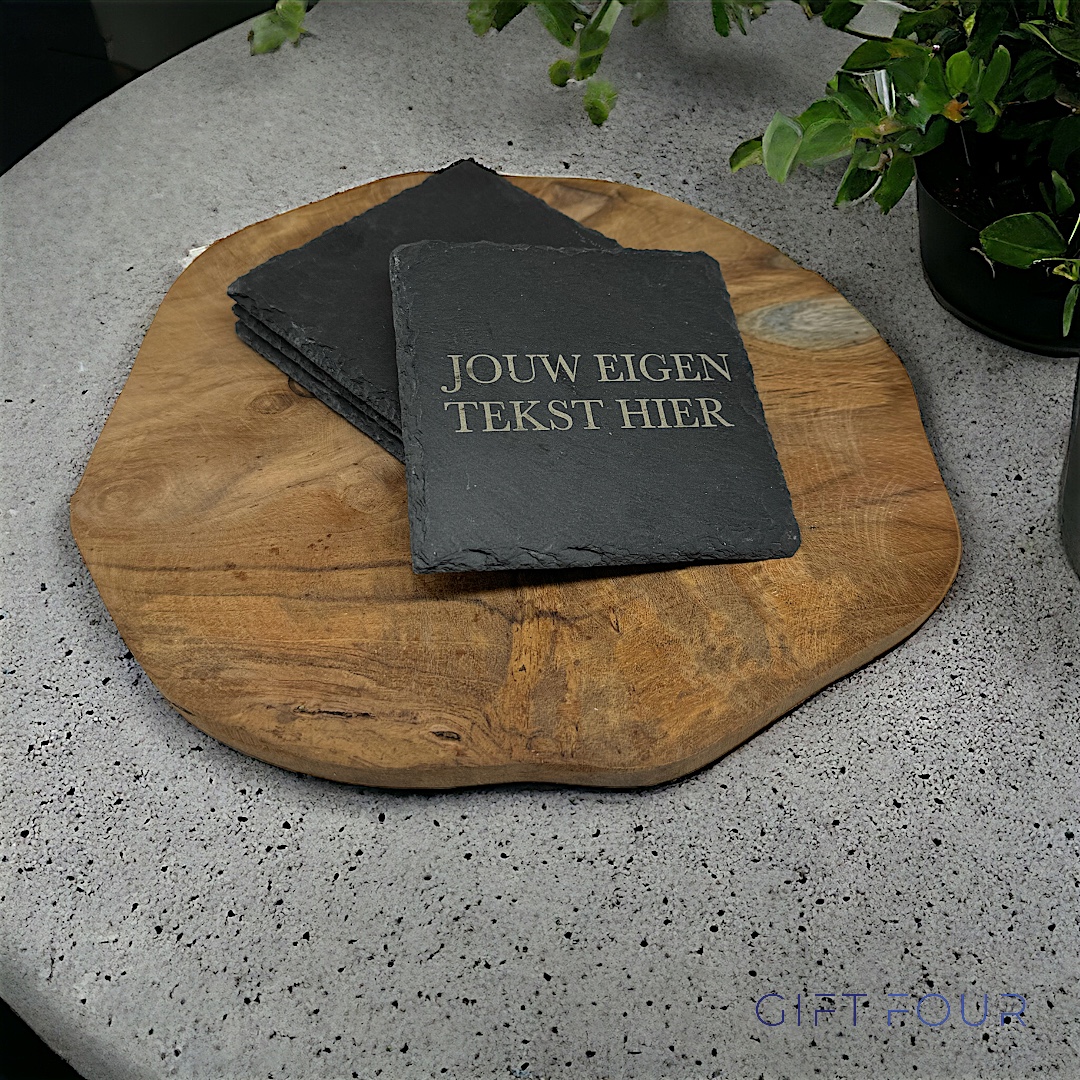 Pimp je tafel met onze toffe set van 4 leistenen onderzetters! Personaliseer ze met coole graveringen, zoals je naam, datum, of gewoon een leuke boodschap. Deze onderzetters zijn niet alleen handig, maar ook een stylish upgrade voor je interieur.